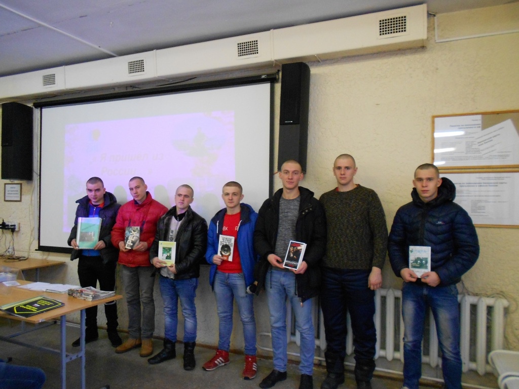 В первой части мероприятия призывники ознакомились с творчеством российского писателя Захара Прилепина. Он является одним из самых перспективных, талантливых и неординарных молодых писателей нашего времени. Популярность Захара Прилепина, особенно среди молодёжи, растёт с каждым днём. Он служил в ОМОН-е командиром отделения, принимал участие в боевых действиях в Чечне в 1996 и 1999 годах. Одно из первых произведений является роман «Патологии», где он в художественной форме описывает правду армейской службы в Чечне. Всего он написал в порядке 22 книг, антологий и сборников, является лауреатом многочисленных литературных премий. В 2014 году за роман «Обитель», о первом советском лагере особого назначения, Захар Прилепин получил национальную литературную премию «Большая книга». Здесь же, на развёрнутой книжной выставке, призывники могли ознакомиться и с другими книгами писателя.