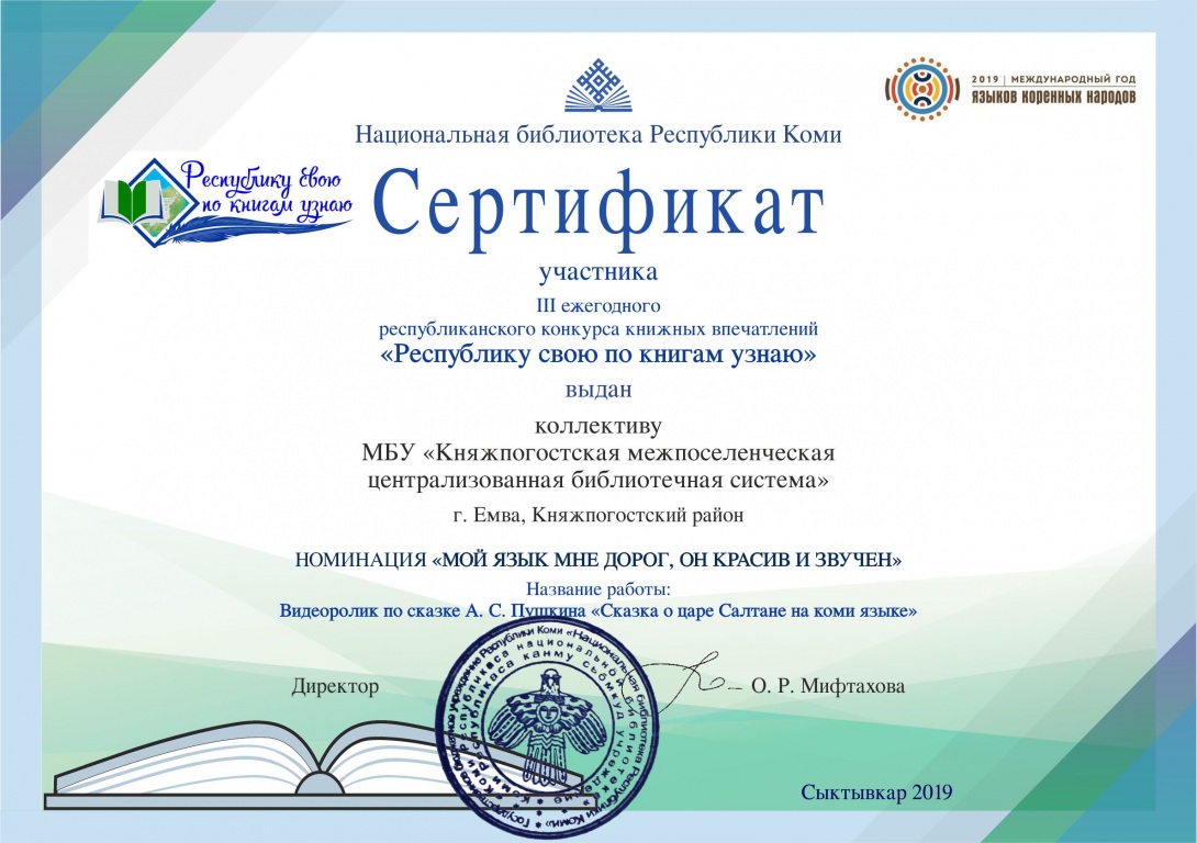 - Серенкова Екатерина Владимировна, помощник директора МБУ «Княжпогостская МЦБС».