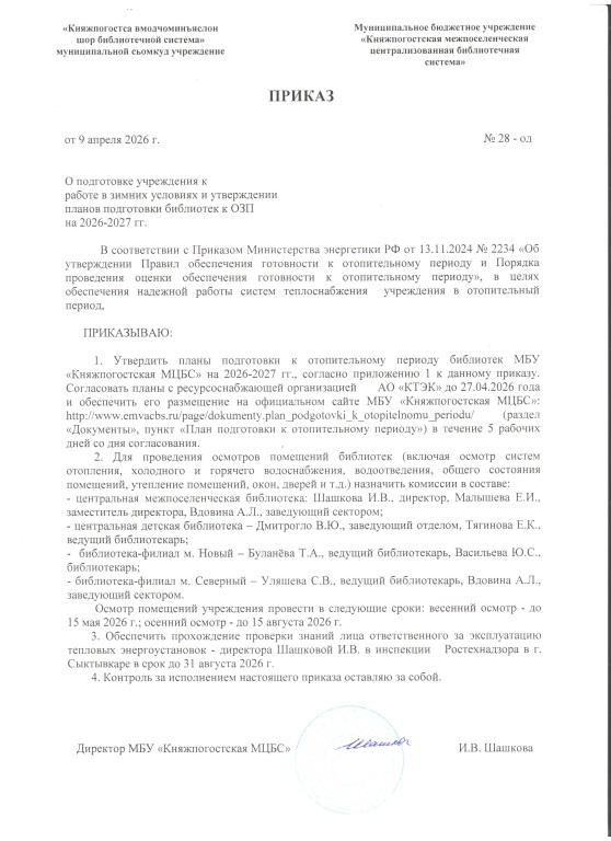 Приказ об утверждении планов по подготовке к ОЗП
