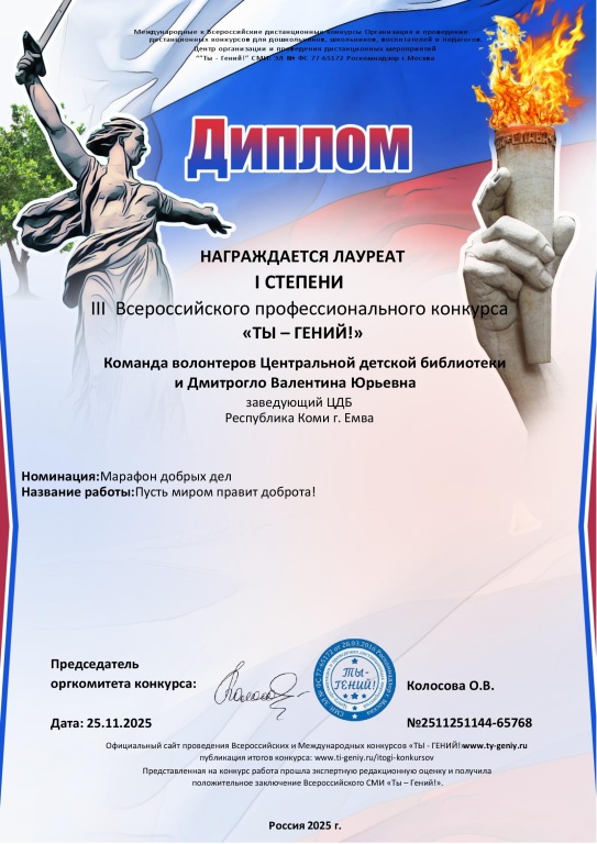 Центральная детская библиотека приняла участие во Всероссийском дистанционном конкурсе «Волонтеры России - 2025».